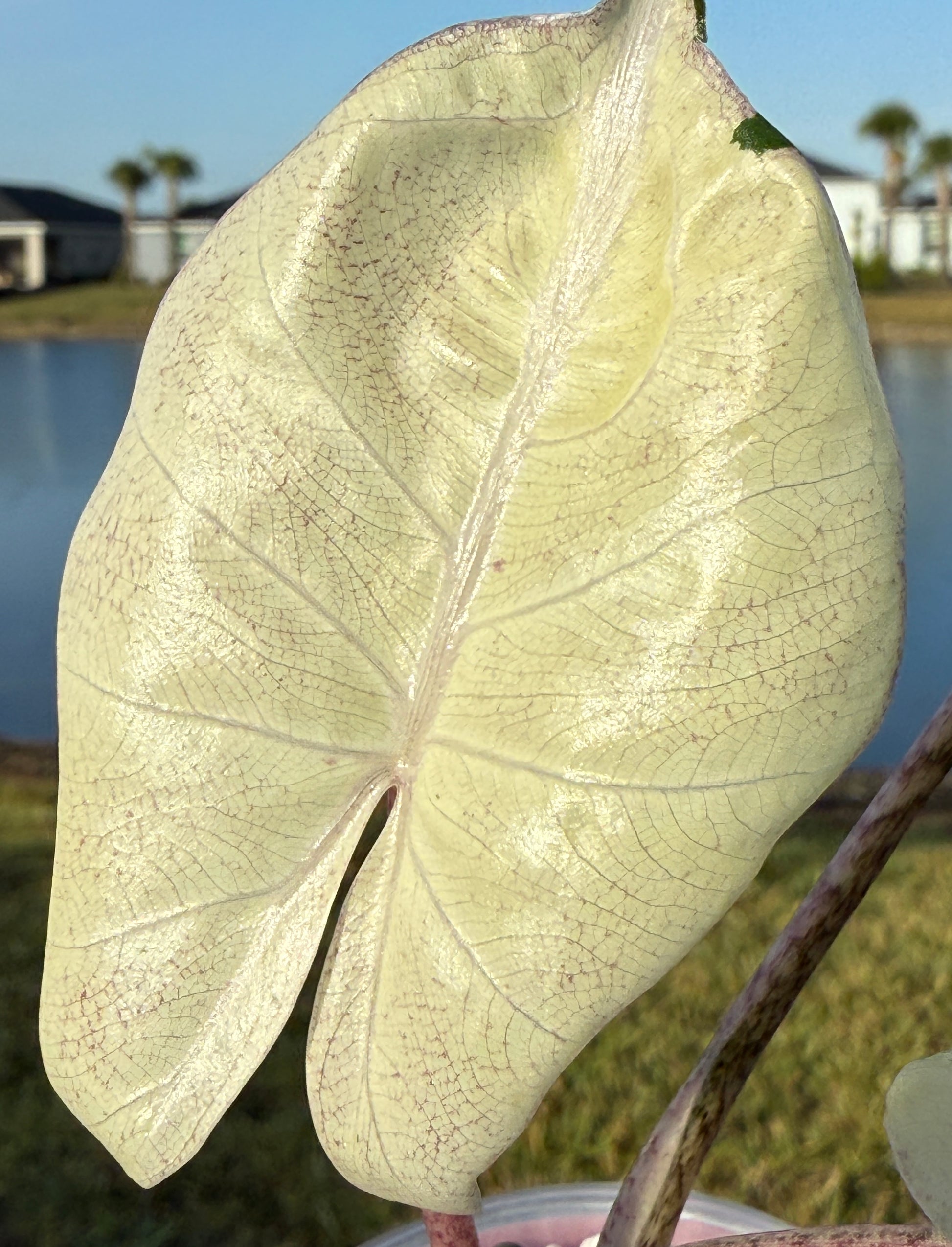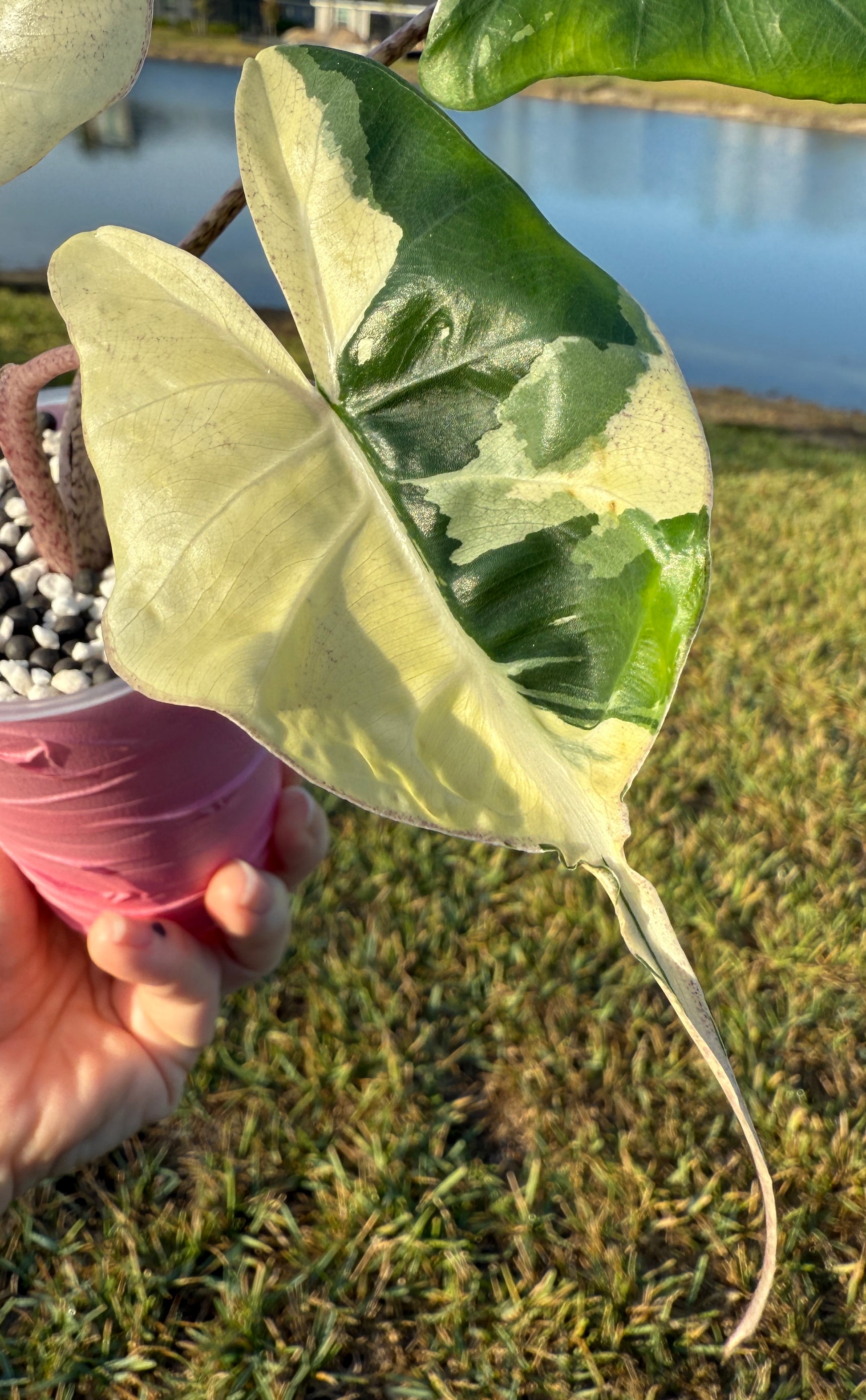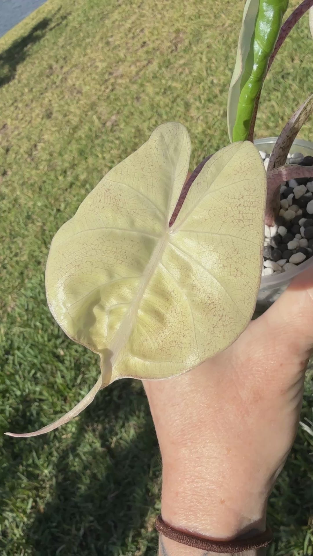 Pink Albo Stingray - corm grown. Last video shows plant for sale as a baby to show color. Last photo is of the mother plant to show genetics; mother plant and photo not mine.